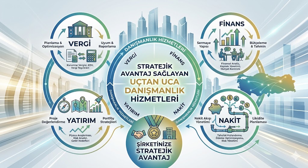 Vergi, finans, nakit ve yatırım kararlarında şirketinize stratejik avantaj sağlayan uçtan uca danışmanlık hizmetleri.